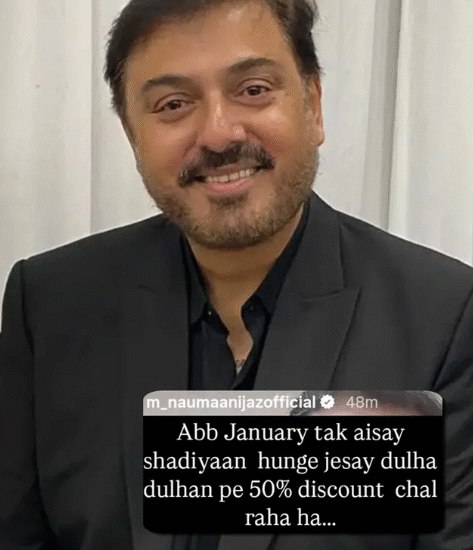 Nauman Ejaz has once again found his way into online conversations, this time with a lighthearted commentary on Pakistan’s winter wedding rush. The veteran actor took to Instagram to poke fun at the intense wedding season that sweeps across the country every year. In his signature witty tone, he wrote, “Abb January tak aisa shadiyaan hungi jaisa dulha dulhan py 50% discount chl rha ha,” sparking both laughter and debate among users.
