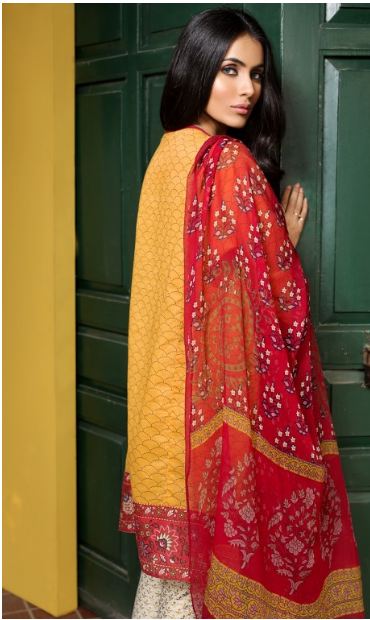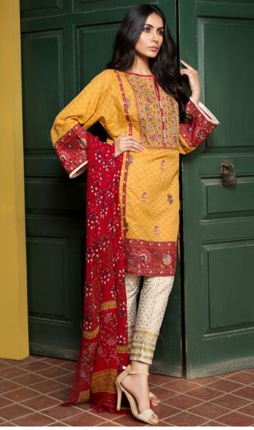 We tried to pick top-5 from this wide range of Volume-1, wasn’t an easy task, but we tried our level best to bring best out of those. This YELLOW colored Lawn dress includes Embroidered Lawn Shirt, Printed Lawn Shalwar and Chiffon Dupatta on only PKR 6,000.