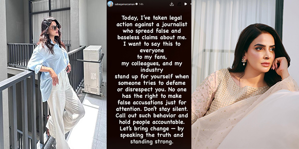 Pakistani actress Saba Qamar has announced that she has taken legal action against a journalist...